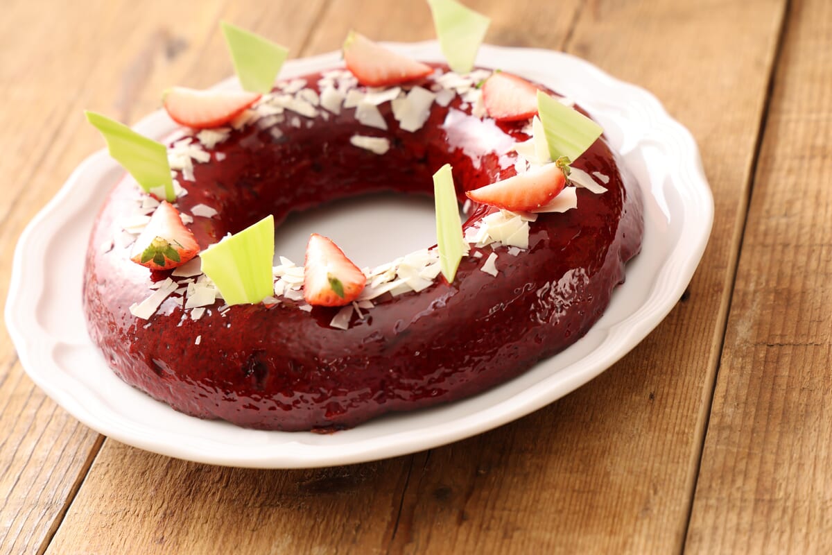 真っ赤ないちごのヴェールを纏った、香り高いエンゼルケーキ。