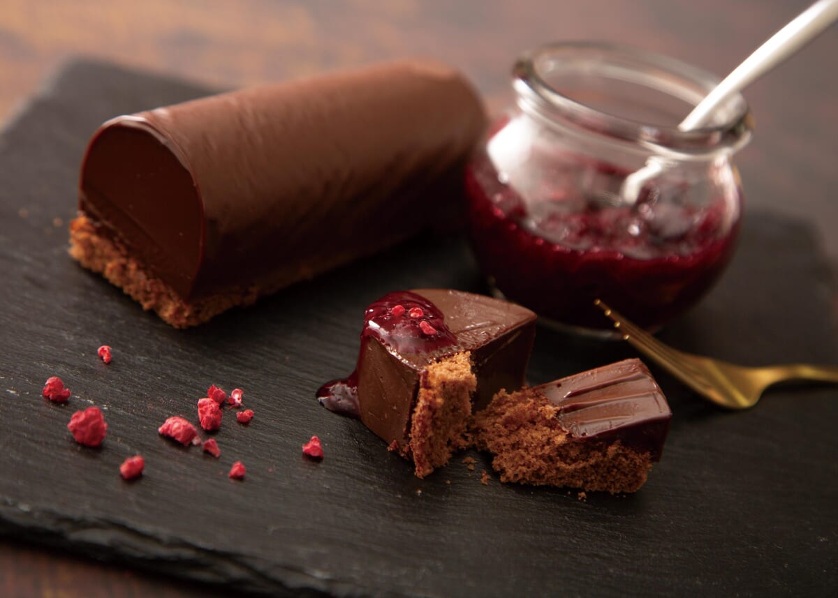 甘酸っぱいいちごのムースと、芳醇な香ばしさのピスタチオムースを重ねた、3 層仕立てに。ひと口ごとにいちごのみずみずしさとピスタチオの濃厚なコクが追いかけてくる、味のコントラストが絶妙です。