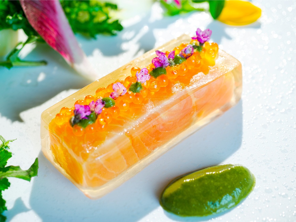 シーズナルプログラムでは初登場となる前菜「サーモンのアスピック」が用意されます。