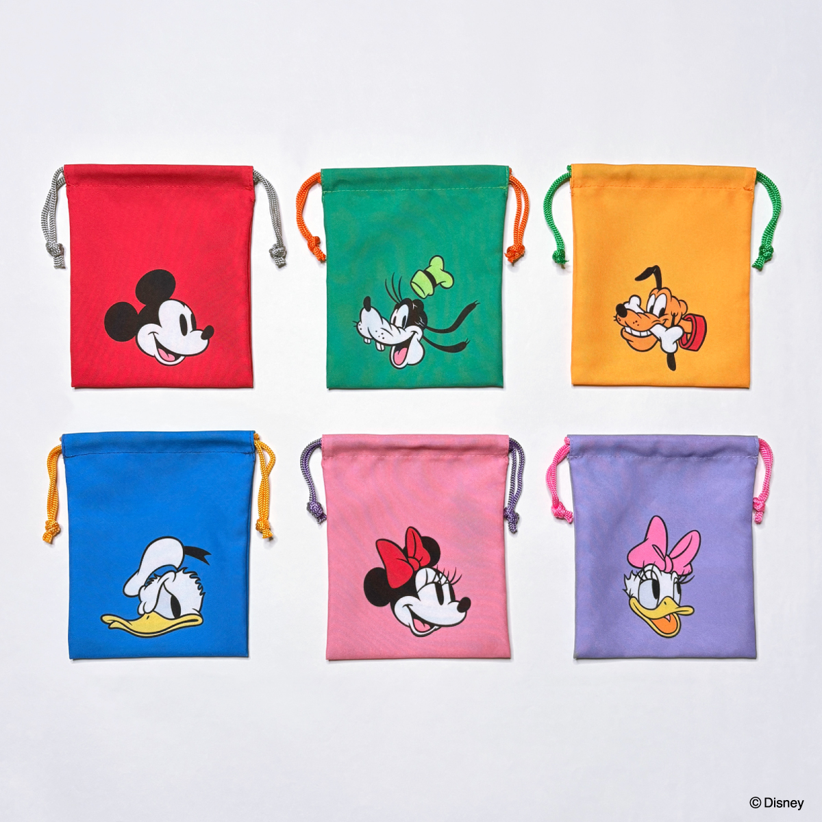 「ミッキー&フレンズ」のお顔をアップでプリントした巾着。