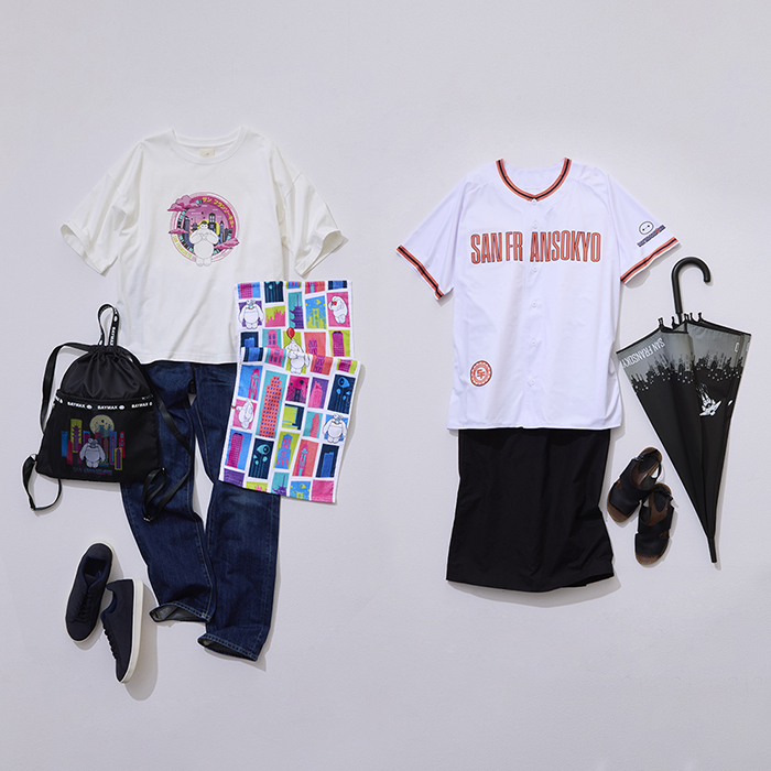 4月6日(シロの日、白いボディの「ベイマックス」にちなんだ日」)に向け、映画の舞台「サンフランソウキョウ」をイメージしたファッションアイテムなど全7種を展開。