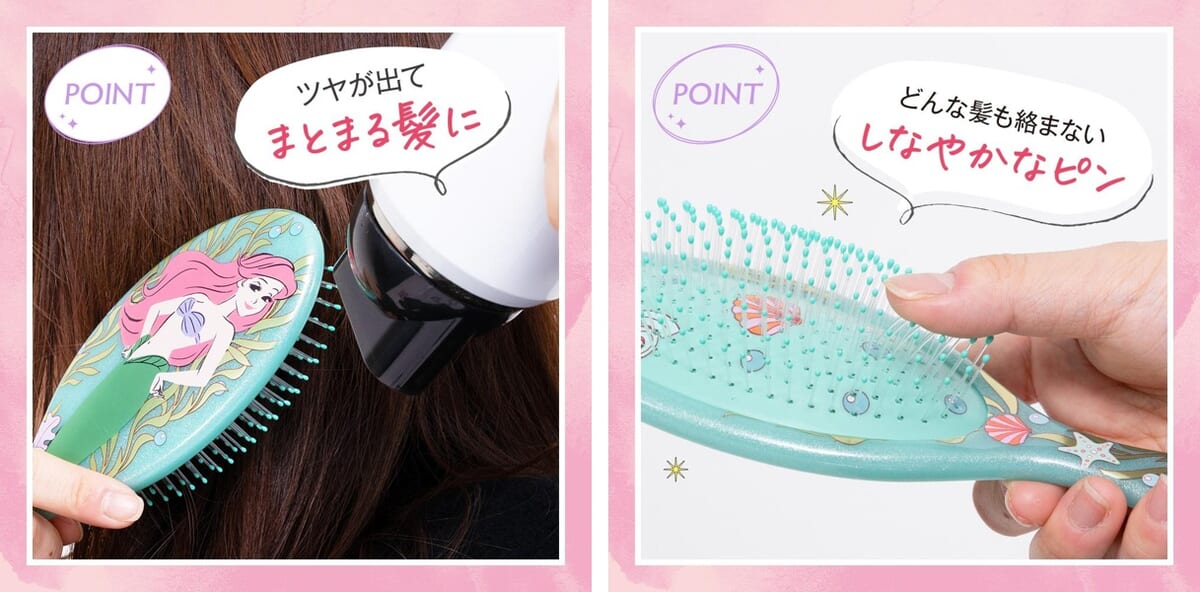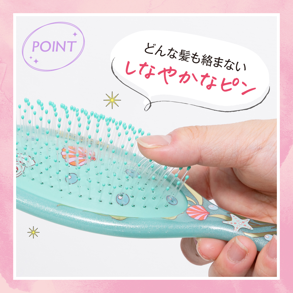 ブラシのボディだけでなく、ピンを支えるクッション面にもプリンセスたちのデザインを施したこだわりの仕様で、細部までプリンセスの世界観が表現されています。