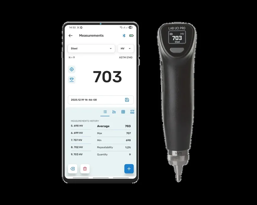 『Lab UCI Pro』は、従来のUCI硬さ計の課題であった測定の繰り返し性を大幅に改善し、測定精度を向上させた第2世代のUCI硬さ計です。