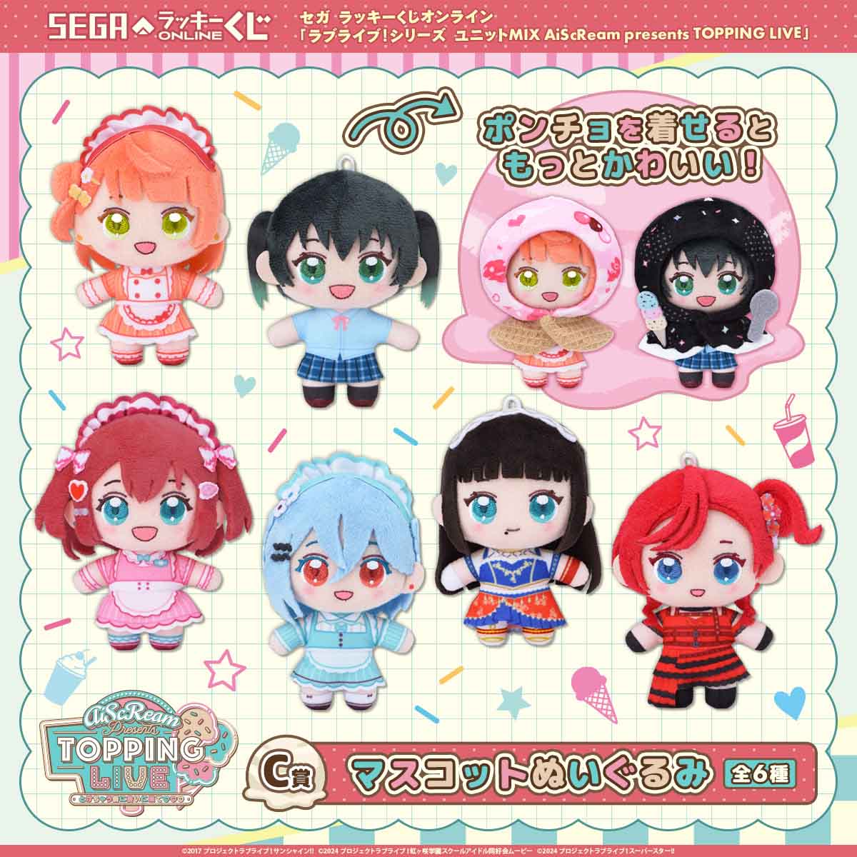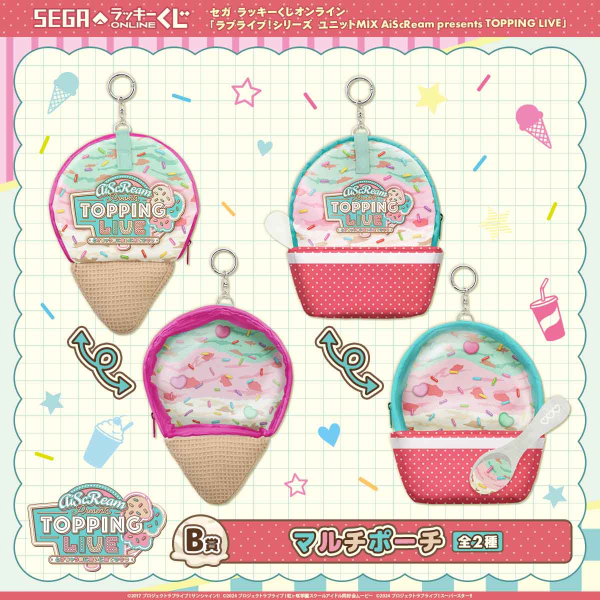 2025年に開催されたライブイベント「AiScReam presents TOPPING LIVE とけちゃう前に会いに来て♡♡♡」をテーマに、主催ユニットの「AiScReam」だけでなく、ライブに出演した「トッピングメンバー」や「ラブ♡ブースターゲスト」たちをラインナップに追加したオンラインくじです。