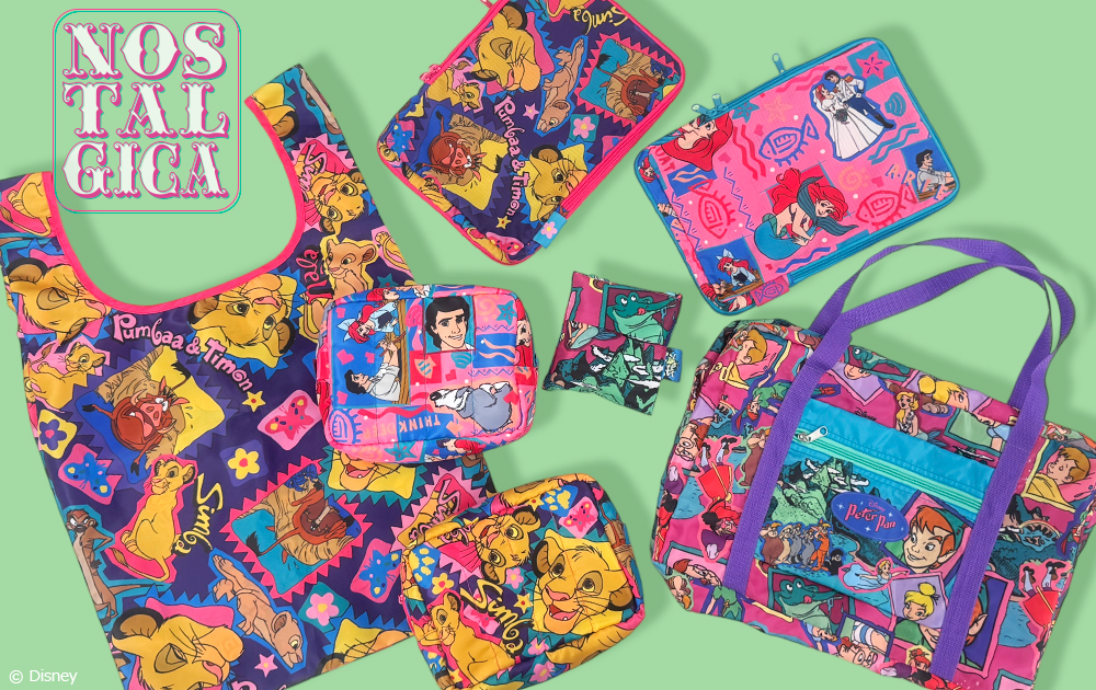 レトロ&ヴィンテージのアートを基調に懐かしさと新しさを感じるデザインで人気の「ノスタルジカ」シリーズより、「ディズニー」デザインの春のレジャーにぴったりなバッグ&ポーチが登場しました!