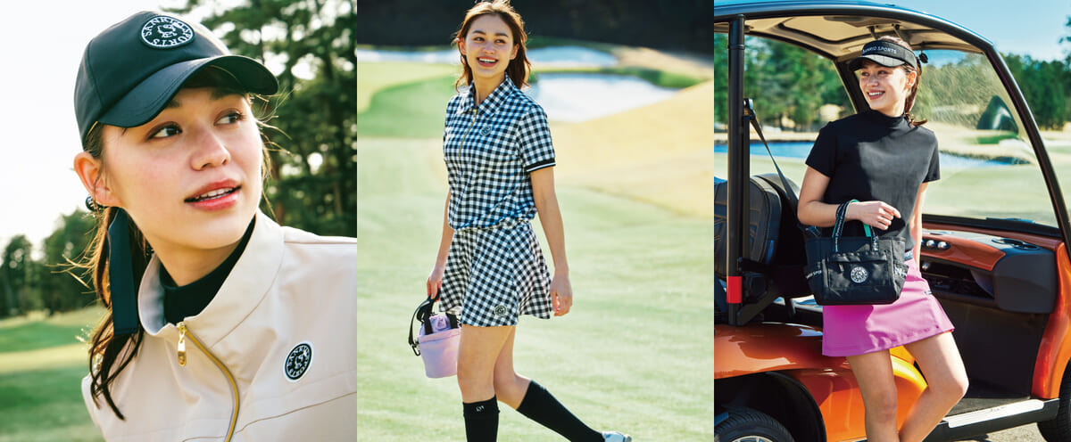 サンリオの人気キャラクター「ハローキティ」やオリジナルのロゴを配し、さりげなくトレンドを取り入れたゴルフコレクション。
