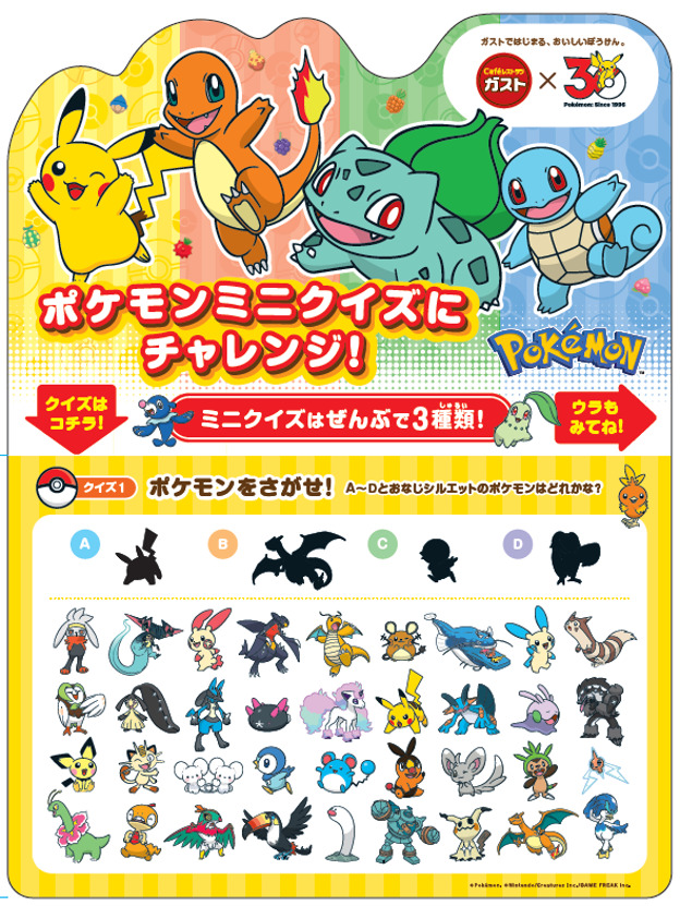 すかいらーくレストランツが運営するファミリーレストラン「ガスト」にて「ポケモン30周年 キャンペーン」を開催。