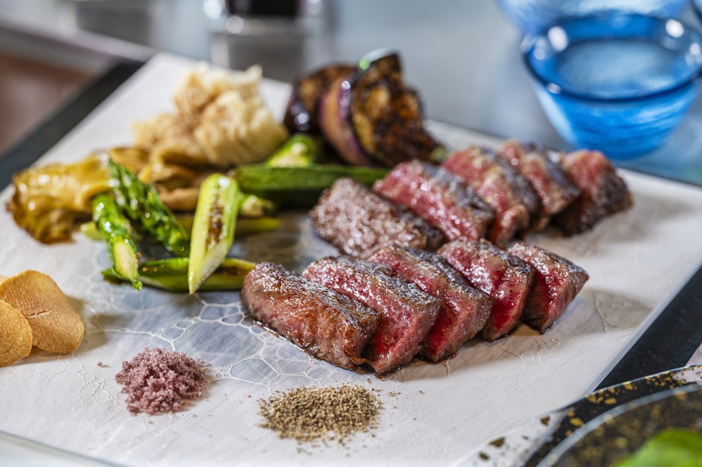 メインには、"A5ランク特選和牛"をフィレとサーロインの食べ比べをサーブ。