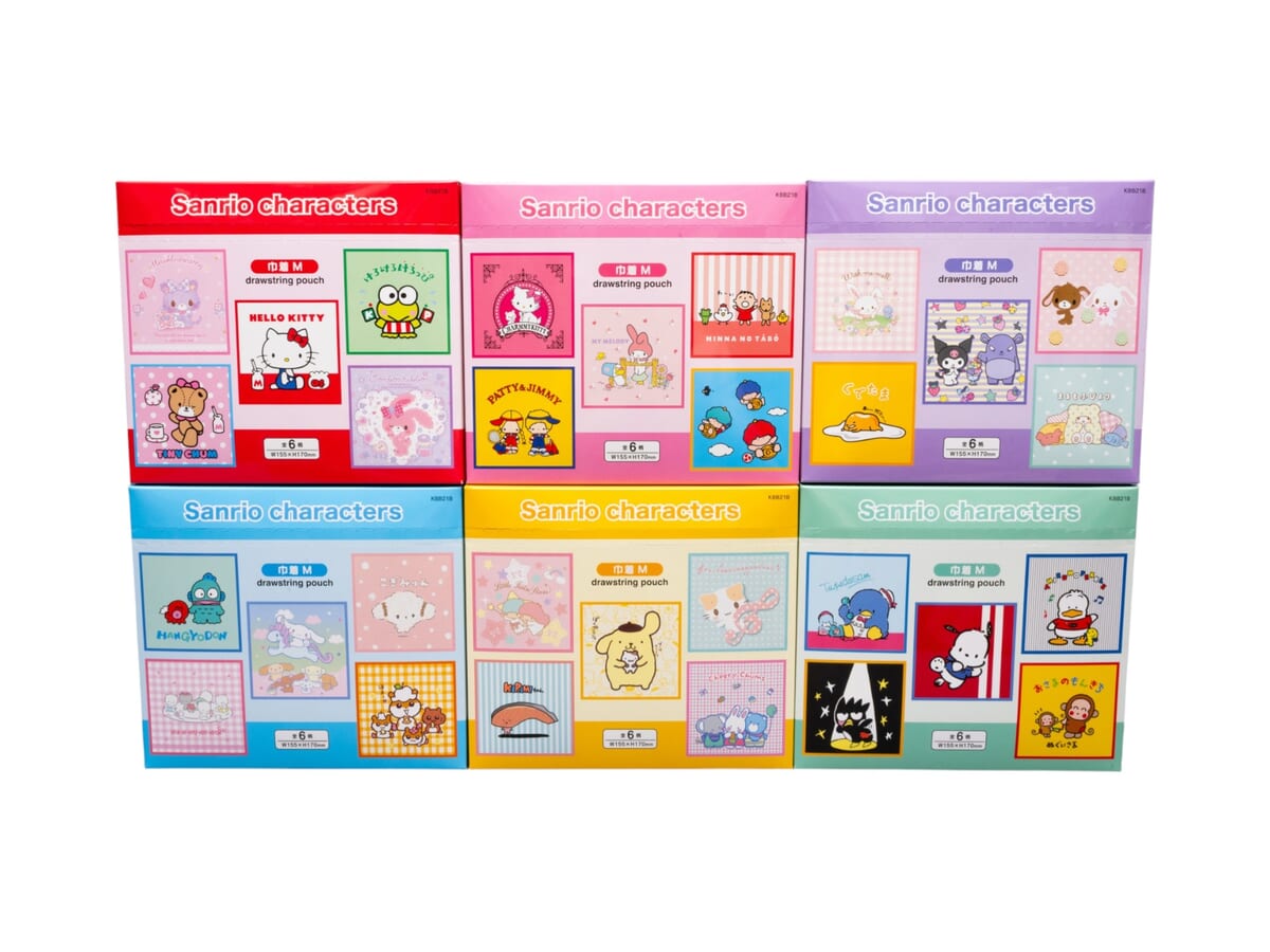 6種類のBOXにそれぞれ6種類のデザインが入った、全36種がそろう「サンリオキャラクターズ」の巾着袋。