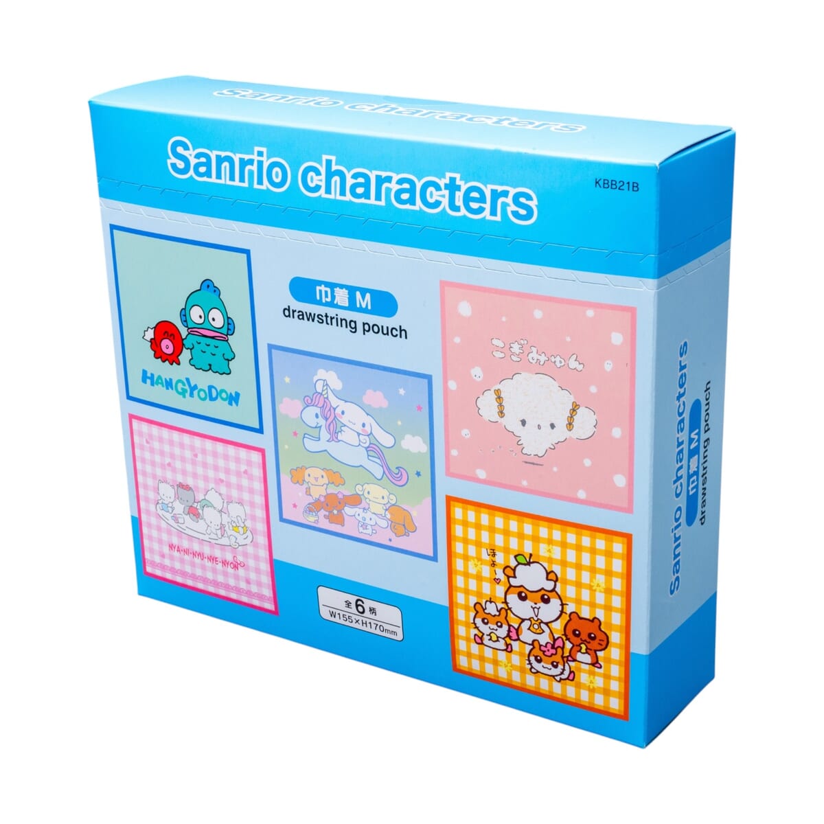 「ハンギョドン」「シナモロール」「こぎみゅん」「ニャニィニュニェニョン」「コロコロクリリン」のキャラクターが揃うライトブルーのBOX。