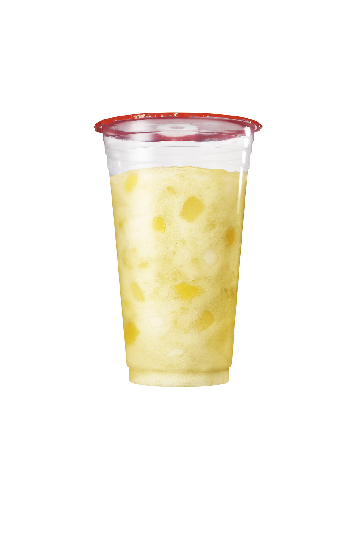 具材感のある角切りパイナップルとパインゼリー、ナタデココのもぐもぐ感と、パイン味の氷のシャリシャリ食感で、フルーツの味わいを感じられるすっきりとした味わいに仕上げられています。