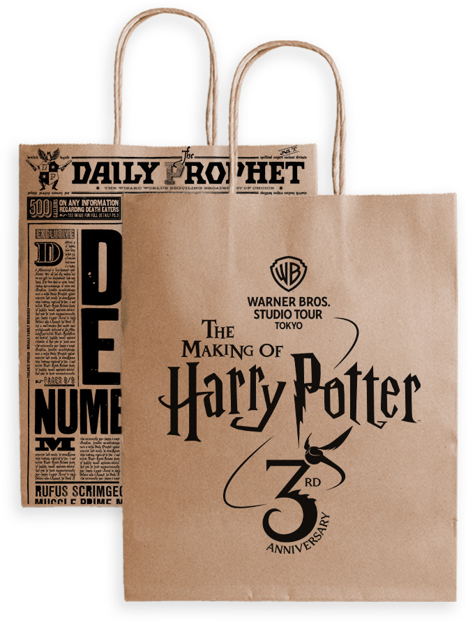 施設内スタジオツアーショップでお買い物の際購入できる、日刊預言者新聞をデザインに用いたショッパーバッグ。