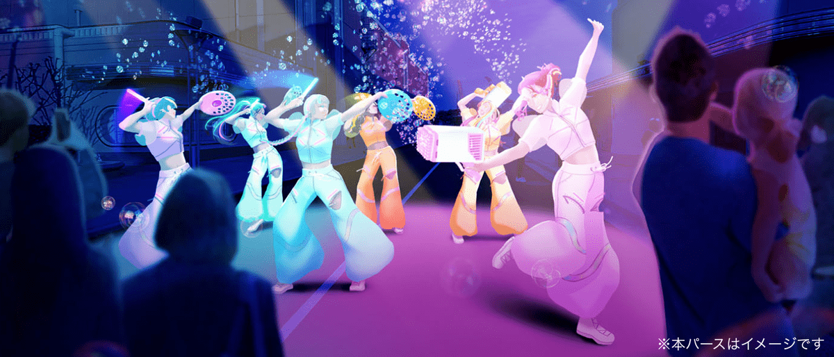 6人組ガールズダンサーによる、シャボン玉とカラフルなライトを使ったダンス・パフォーマンスです。
