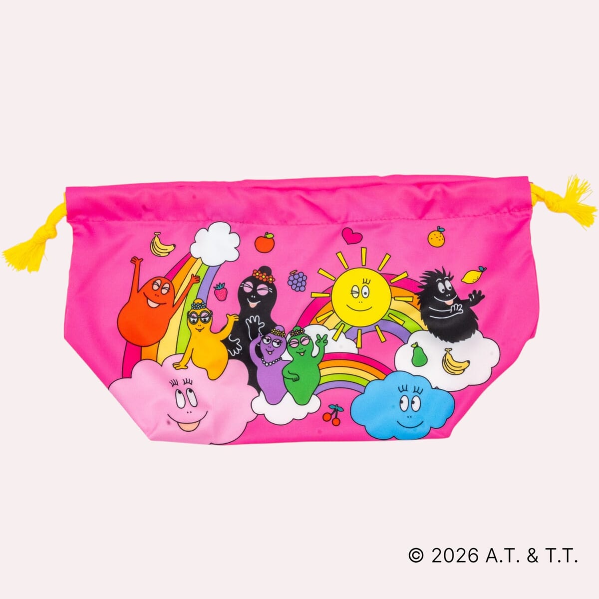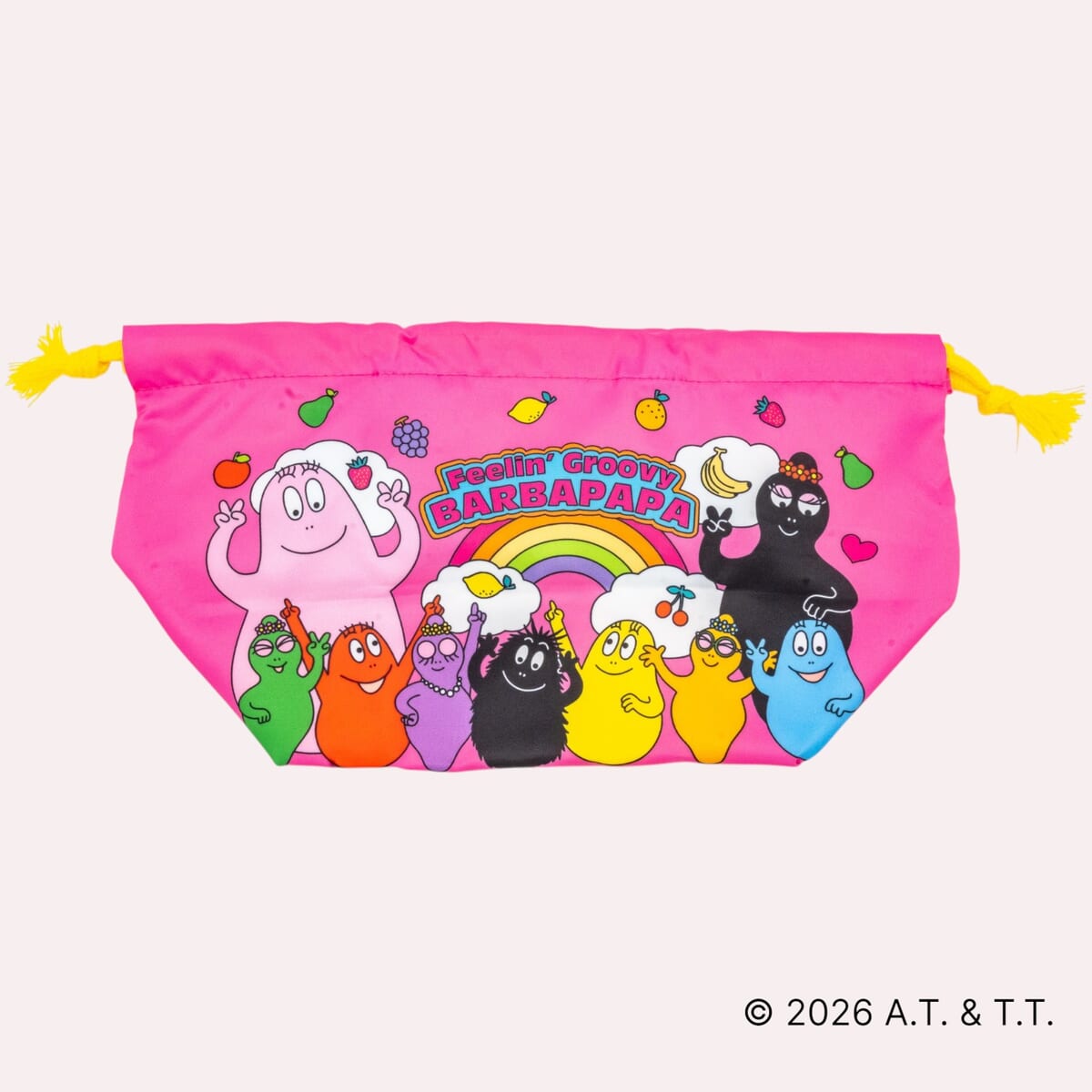 ピンクの生地に「バーバパパ」ファミリーが勢揃いした賑やかなデザインで、ランチタイムの気分を盛り上げます。