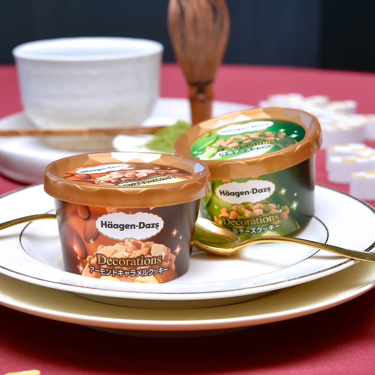 ハーゲンダッツより、2019年2月19日(火)より期間限定でDecorations(デコレーションズ)シリーズ『アーモンドキャラメルクッキー』と『抹茶チーズクッキー』が登場!