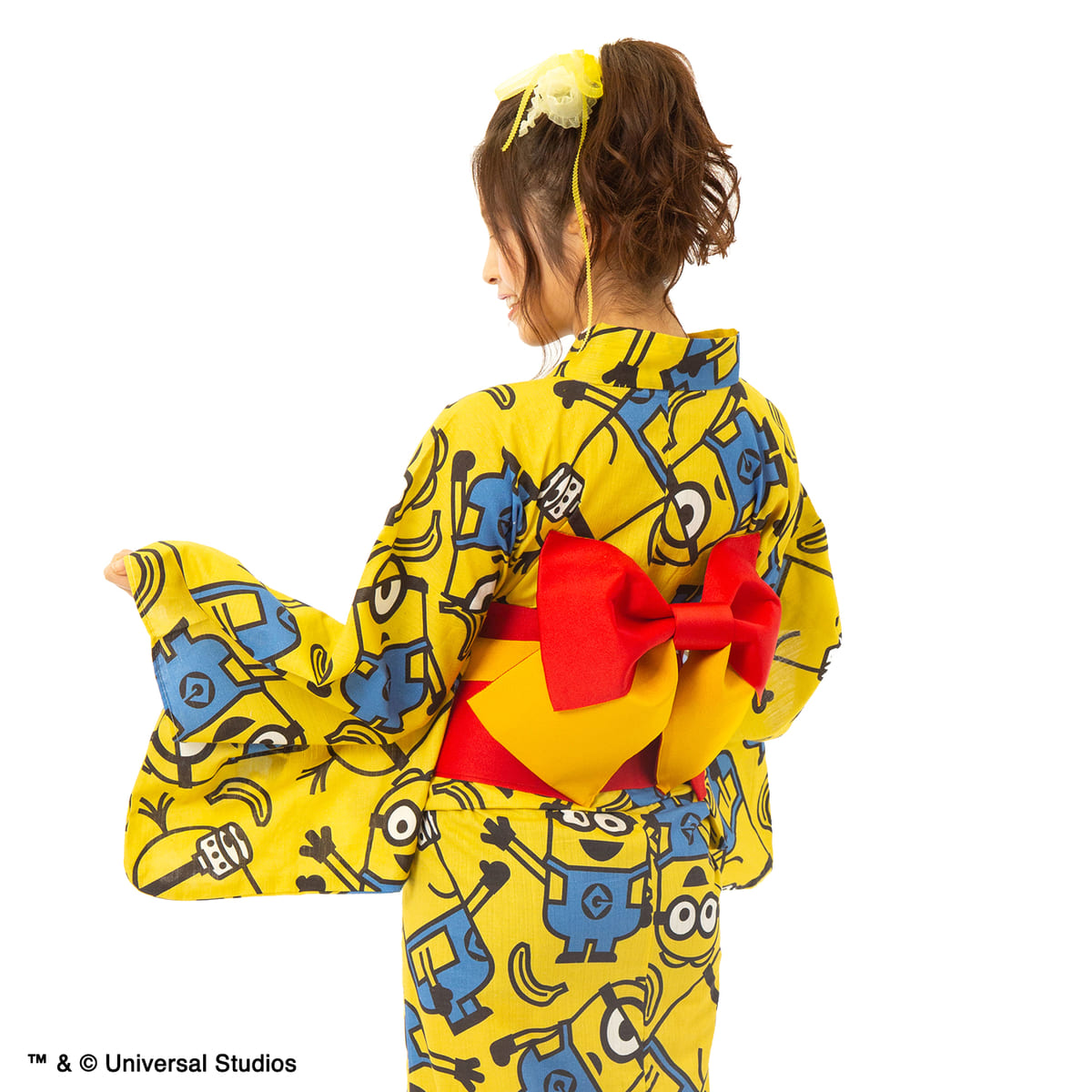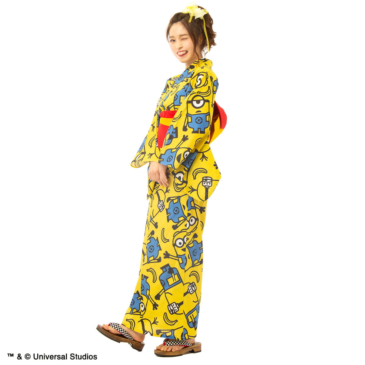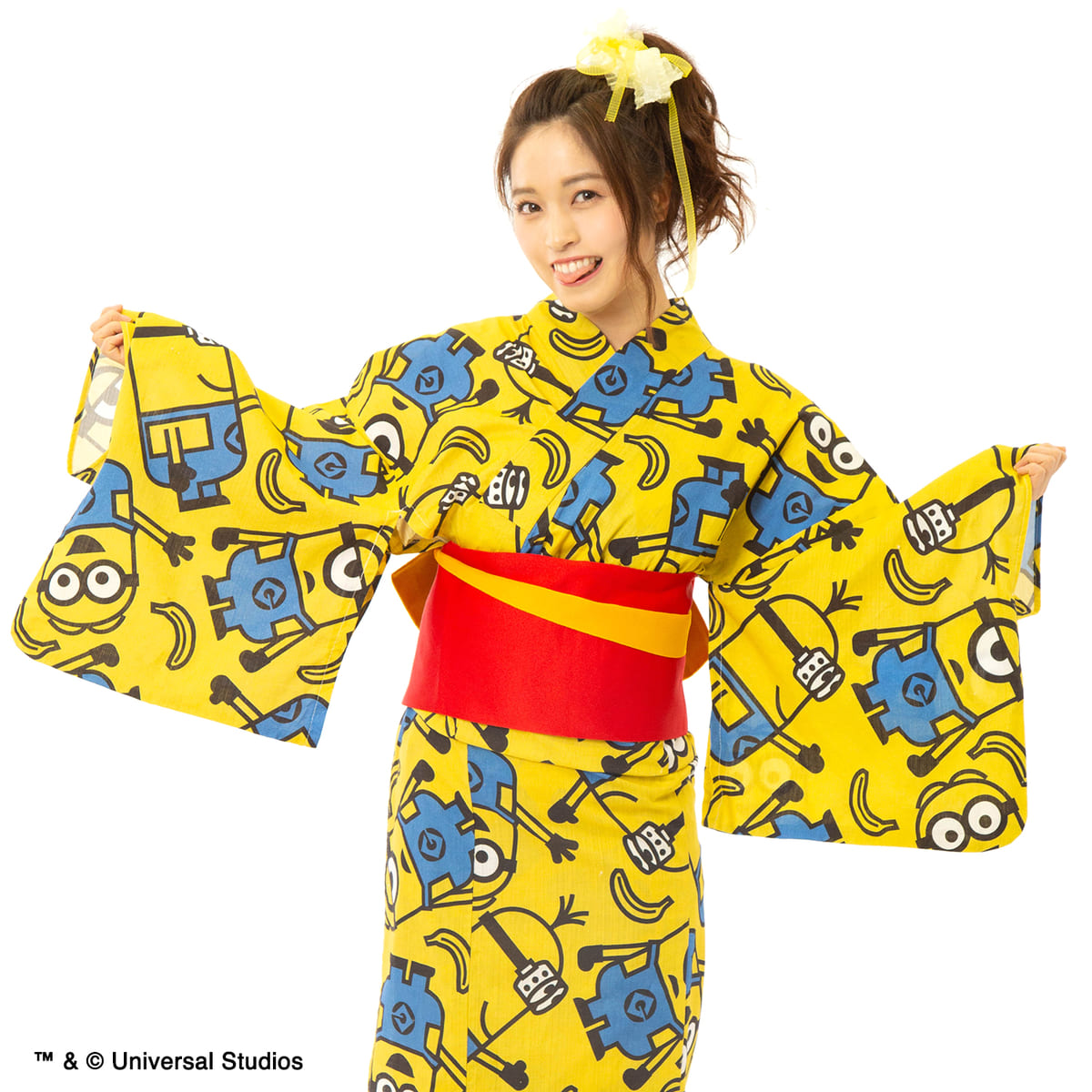 黄色地に、「ミニオン」がにぎやかにデザインされた浴衣。
