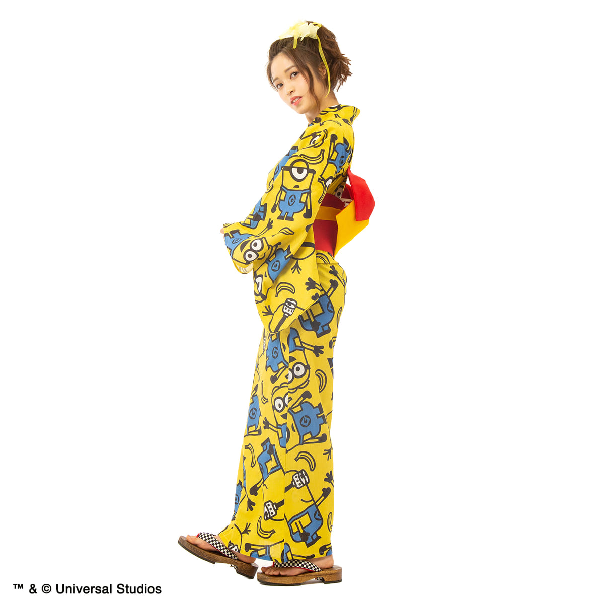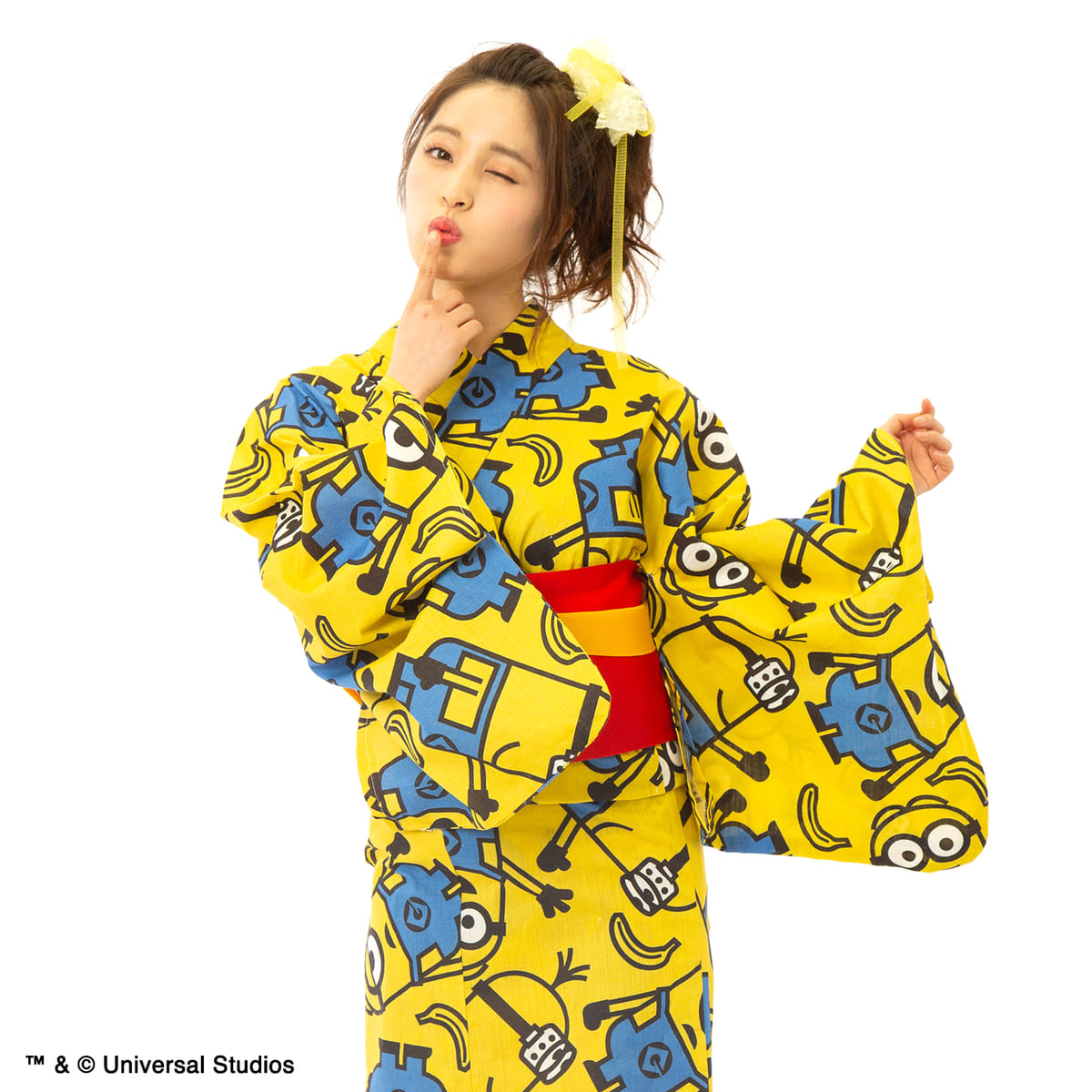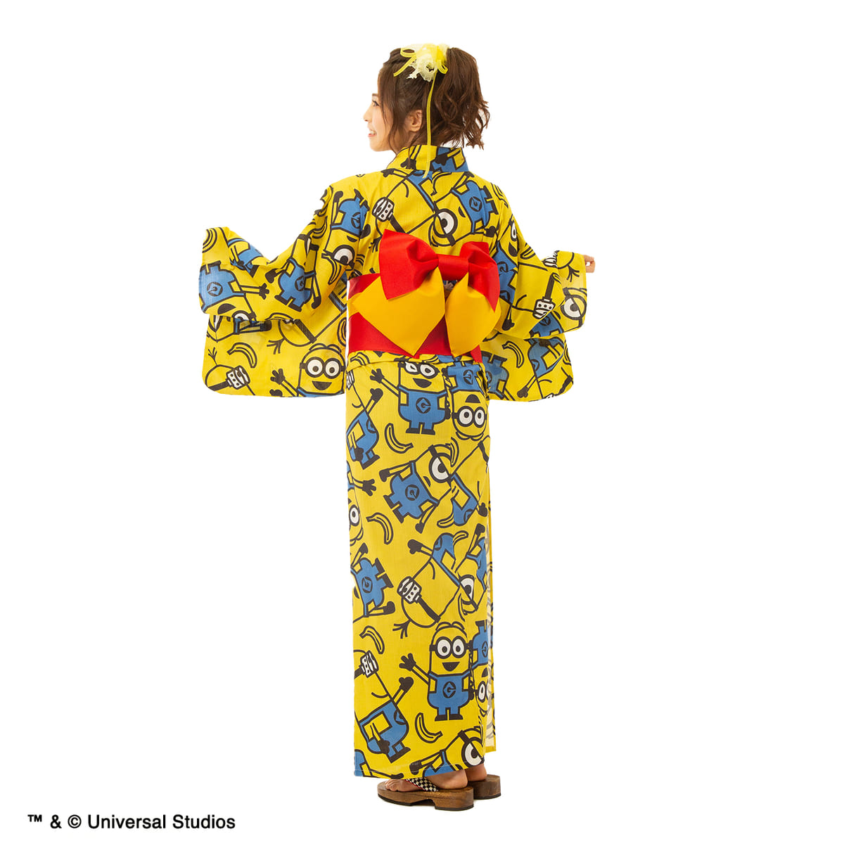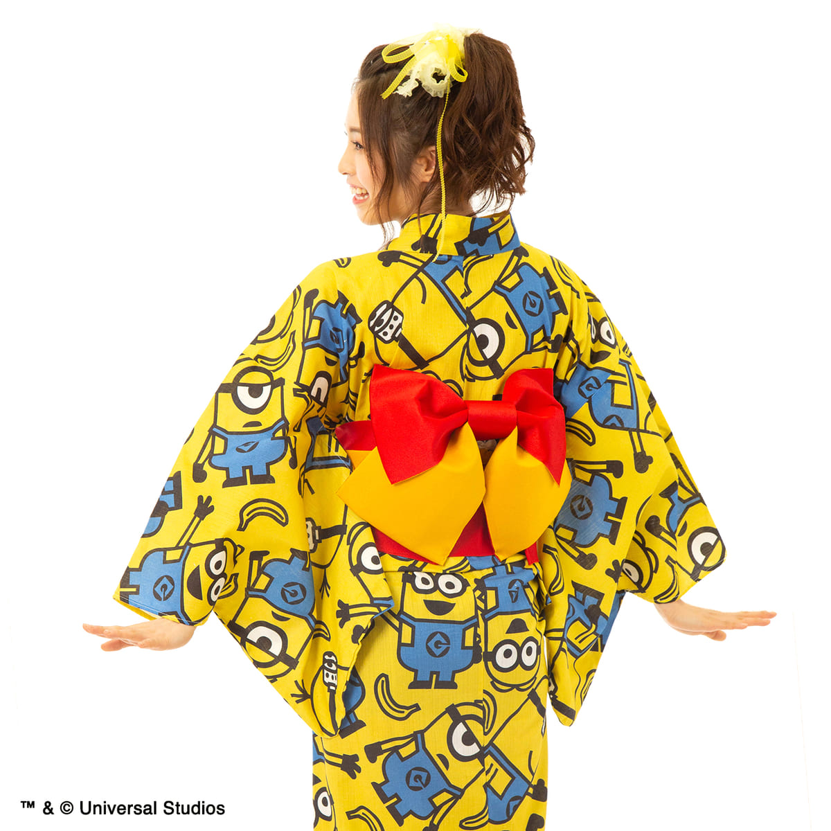 黄色地に、「ミニオン」がにぎやかにデザインされた浴衣。