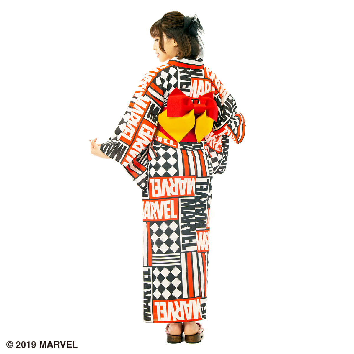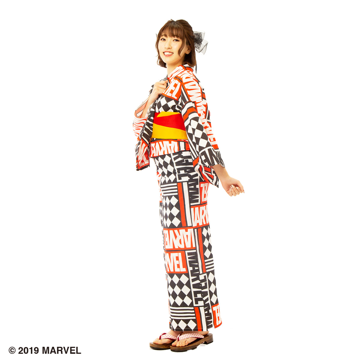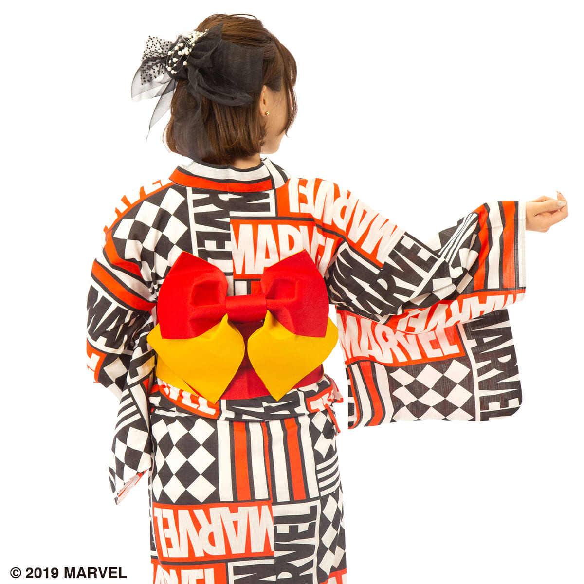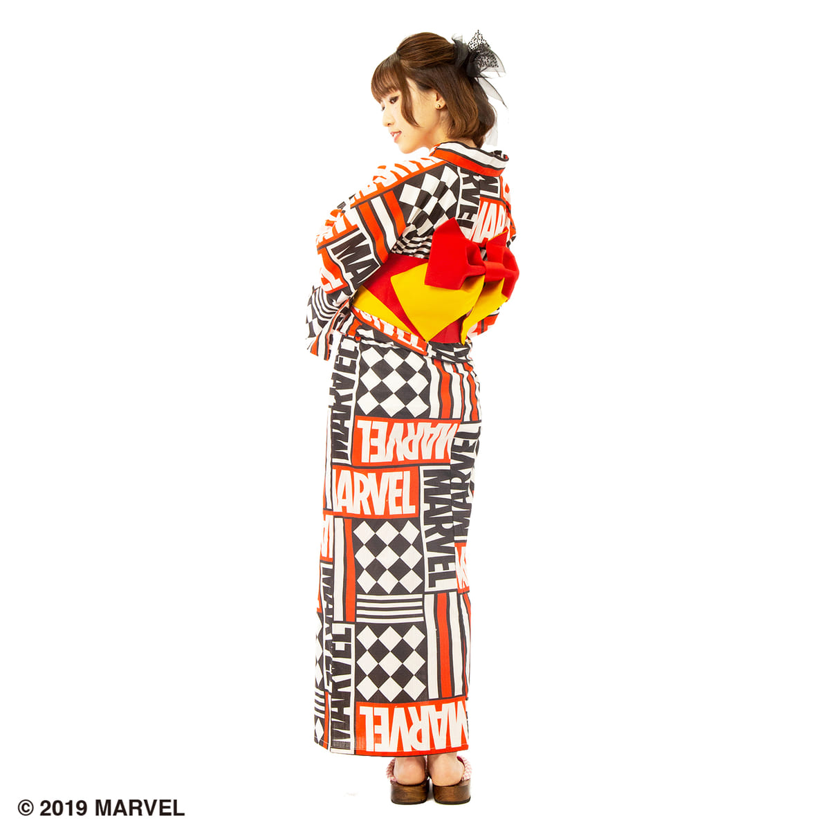 「MARVEL」のボックスロゴがデザインされた浴衣。