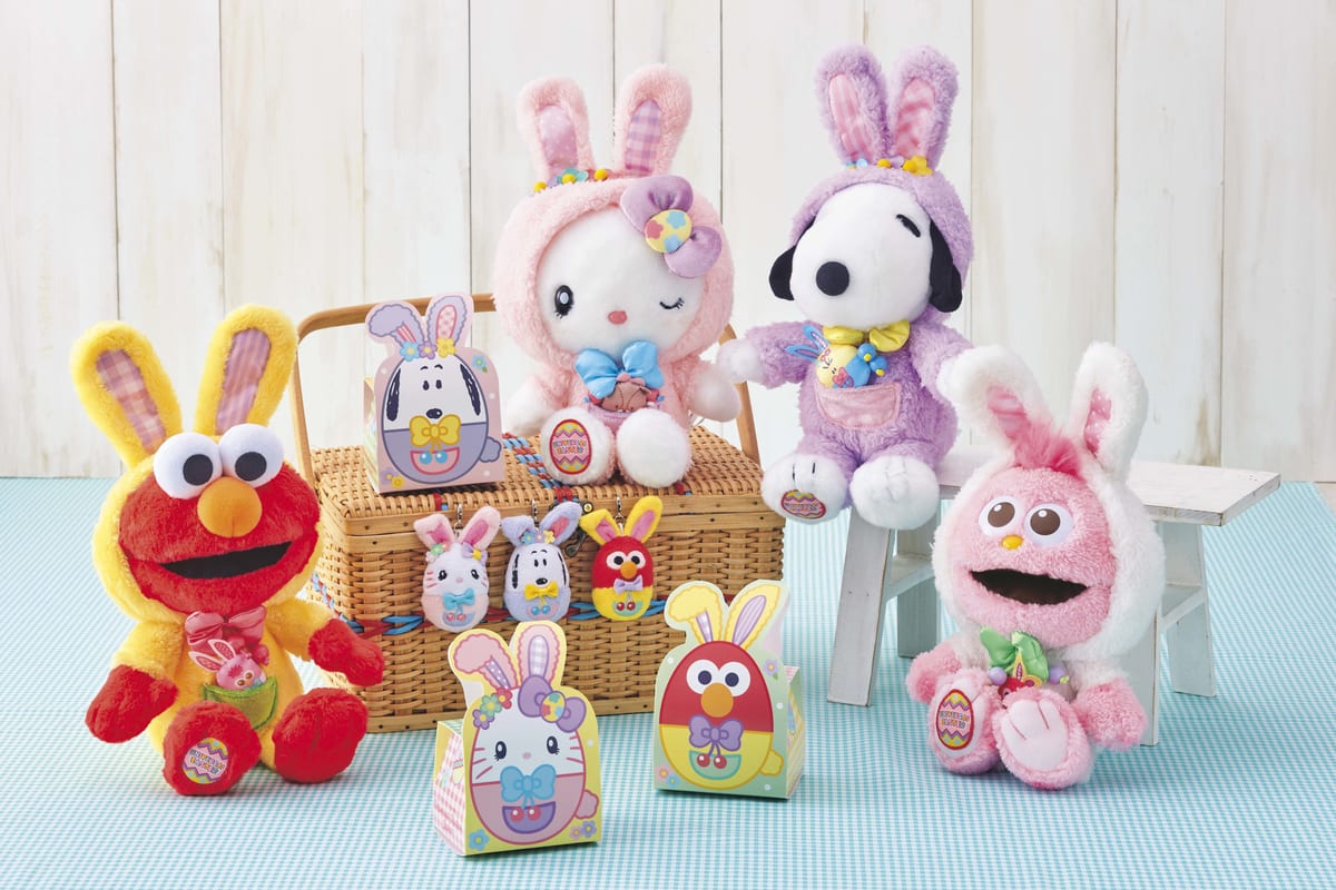 イースター・エッグになったミニオンとスヌーピーにふわふわのうさぎの耳がついたこの春だけのデザイン。