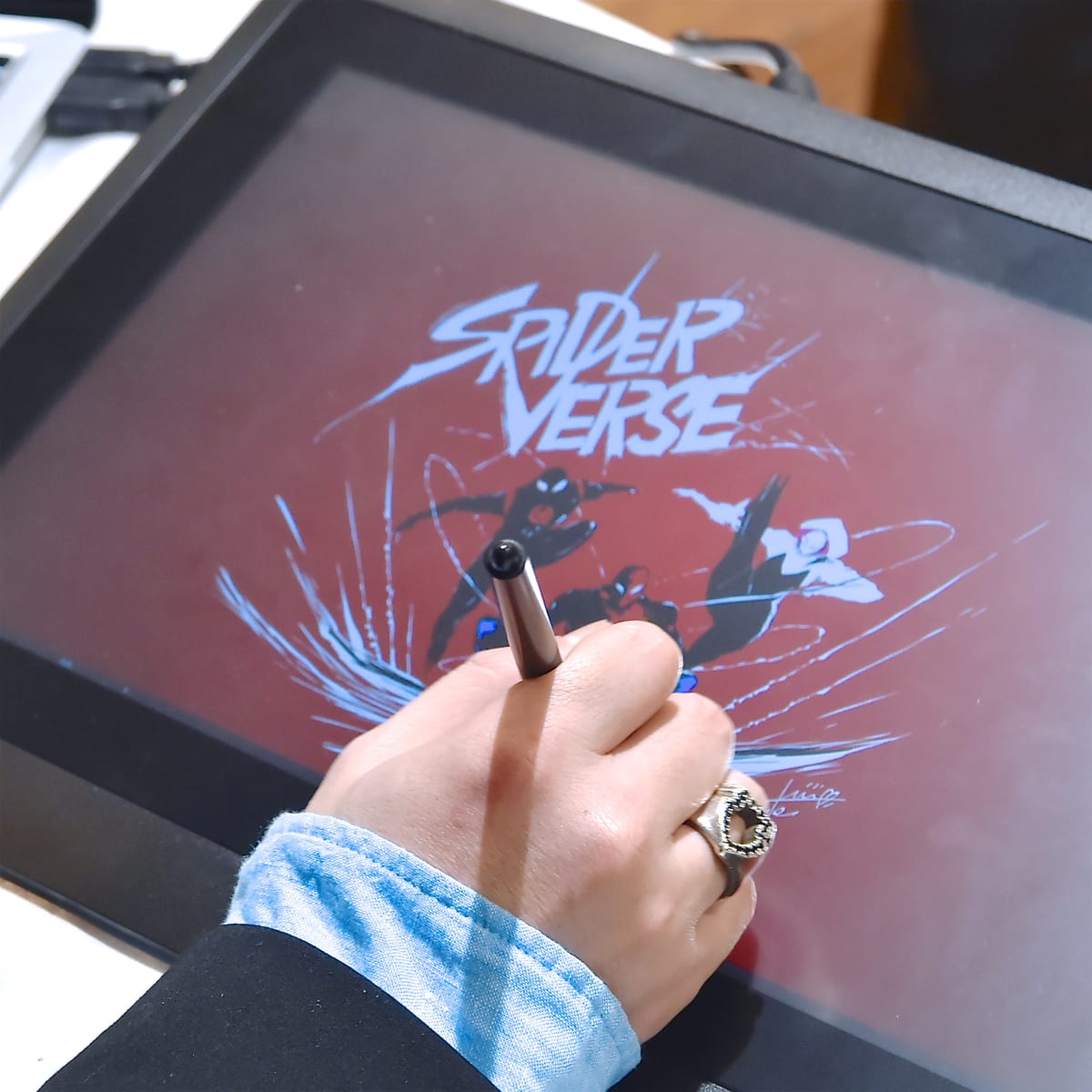 「スパイダーマン」シリーズ初のアニメーション映画「スパイダーマン:スパイダーバース」の制作現場でも大活躍したワコムの液晶ペンタブレットを使用した迫力のライブドローイング。