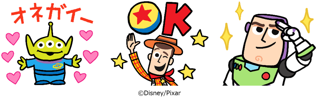 『トイ・ストーリー』のキャラクターたちのポップな動きが楽しいアニメスタンプ。