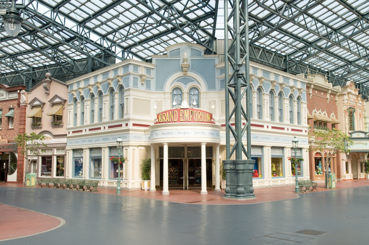 パークのエントランスを抜けると、屋根のついたアーケードがゲストを迎えます。