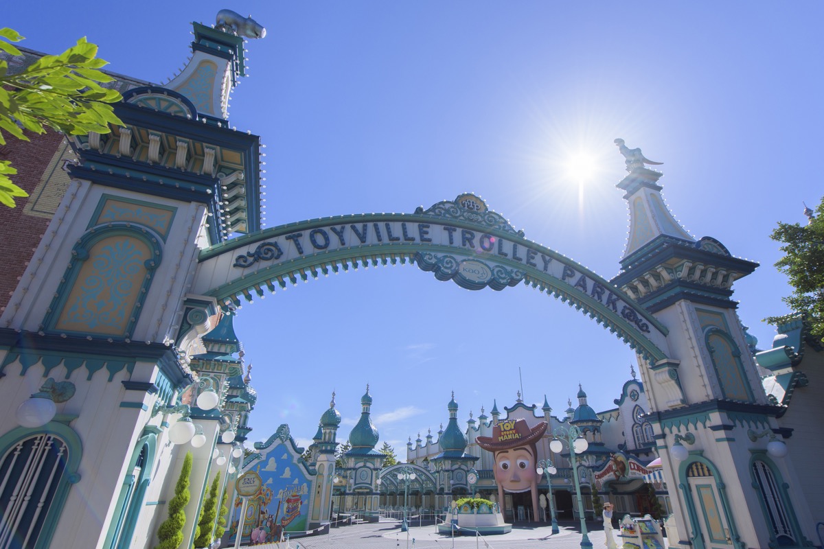 アメリカンウォーターフロントでひときわ賑わっているのが、人気アトラクション「トイ・ストーリー・マニア!」のある「トイビル・トロリーパーク」