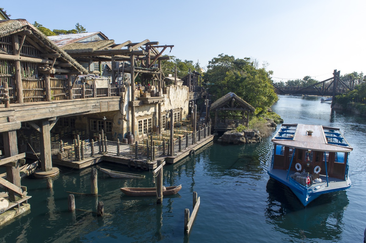 「ロストリバーデルタ」から「メディテレーニアンハーバー」まで約6分をかけて移動する「ディズニーシー・トランジットスチーマーライン」
