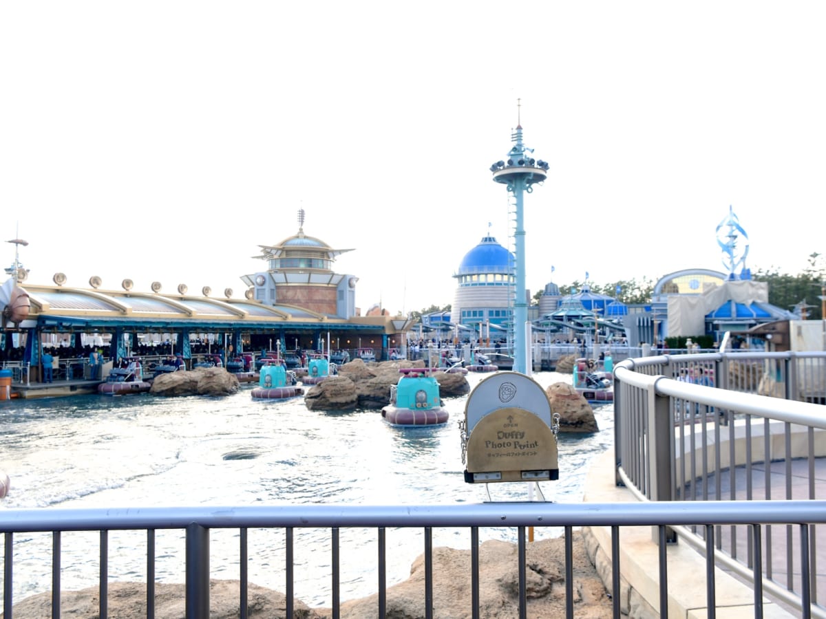 ポートディスカバリーにあるダッフィーのフォトポイントでは、アトラクション「アクアトピア」や、「ニモ&フレンズ・シーライダー」を背景に写真を撮ることができます☆