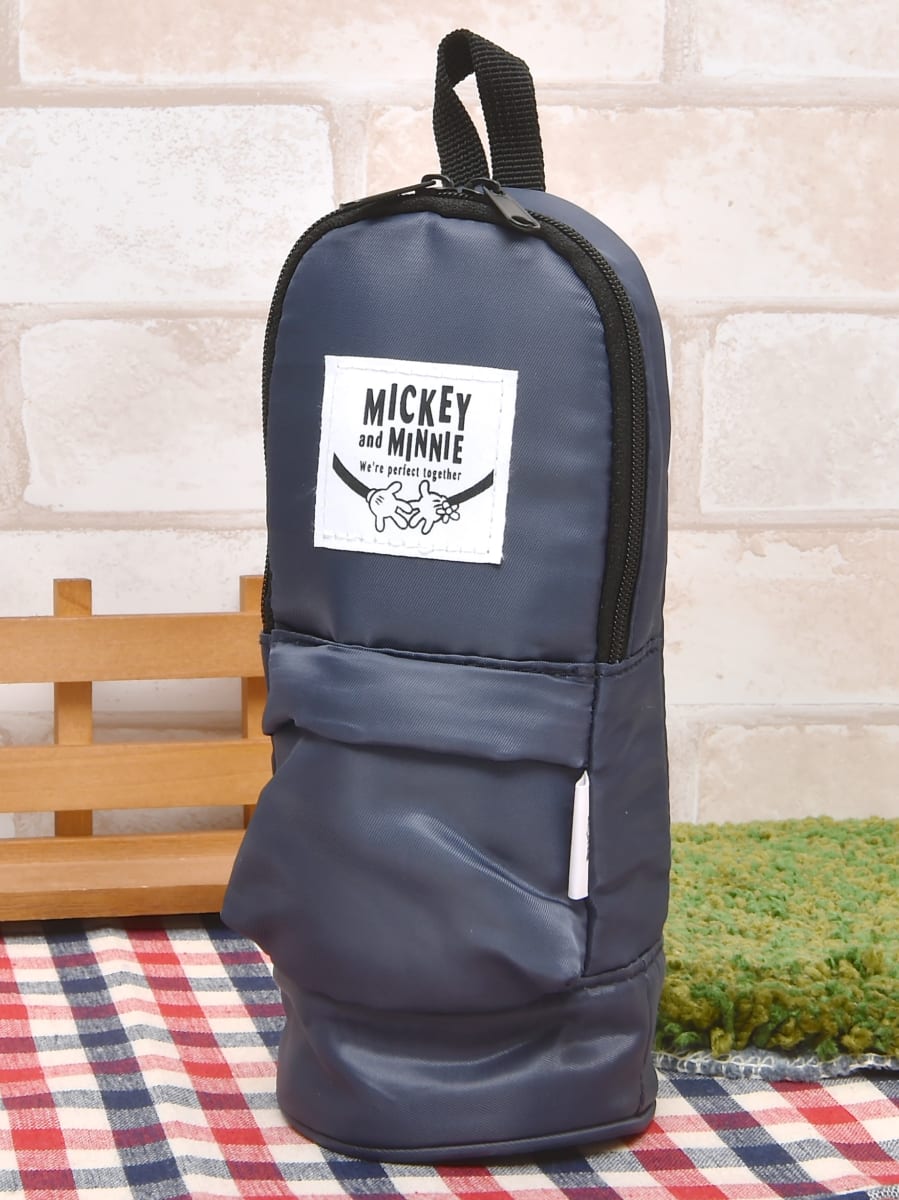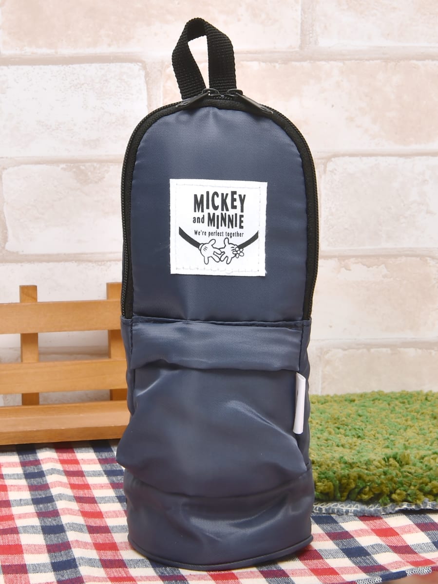 手をつないでいるラブラブなデザインのワッペンがあしらわれた「ミッキー&ミニー」のペンケース。