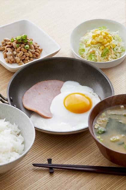 忙しい朝でも手軽に栄養バランスがとれるよう、和食の基本である「一汁三菜」をテーマとし、ご飯とみそ汁、おかず3品で構成されるお得かつ理想的な朝膳になっています☆