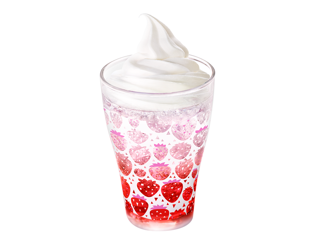 「マックフィズとちおとめ」に、コクのあるソフトクリームをトッピングした、リッチな味わいのデザートドリンク。