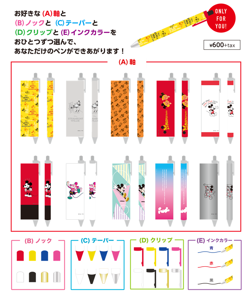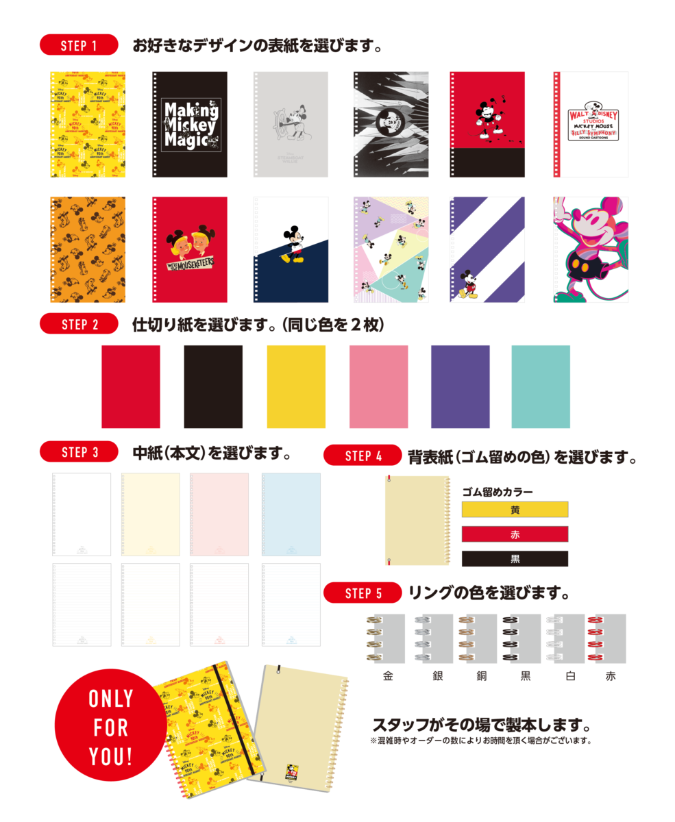ミッキーマウスの好きなイラストや、パーツを自由にカスタマイズして作りあげる「ONLY FOR YOU!(あなただけの)ミッキーマウスグッズ」が登場。