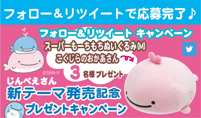 『じんべえさん「まいごのこくじらの夢」テーマ発売記念!フォロー&リツイートキャンペーン』は、じんべえさん公式Twitterにて、2019年3月14日(木)まで開催中です☆