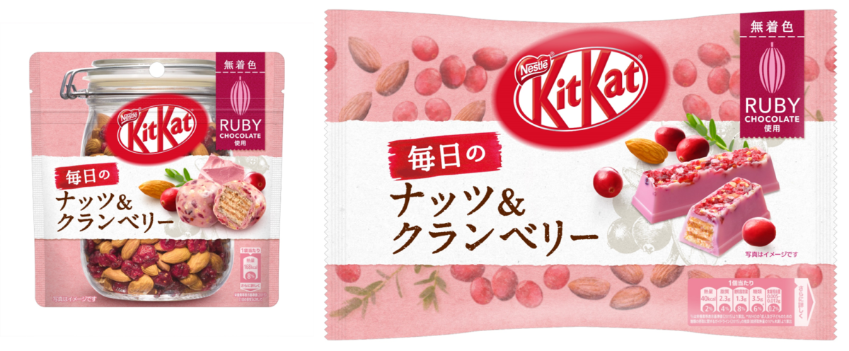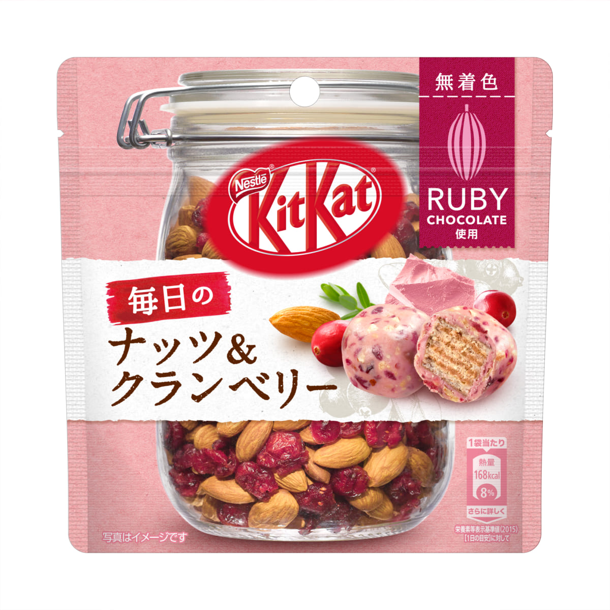 ビター、ミルク、ホワイトに次ぐ新しいチョコレート・ルビーをベースに、ナッツとドライフルーツを組み合わせた「キットカット 毎日のナッツ&クランベリー ルビー」が登場!
