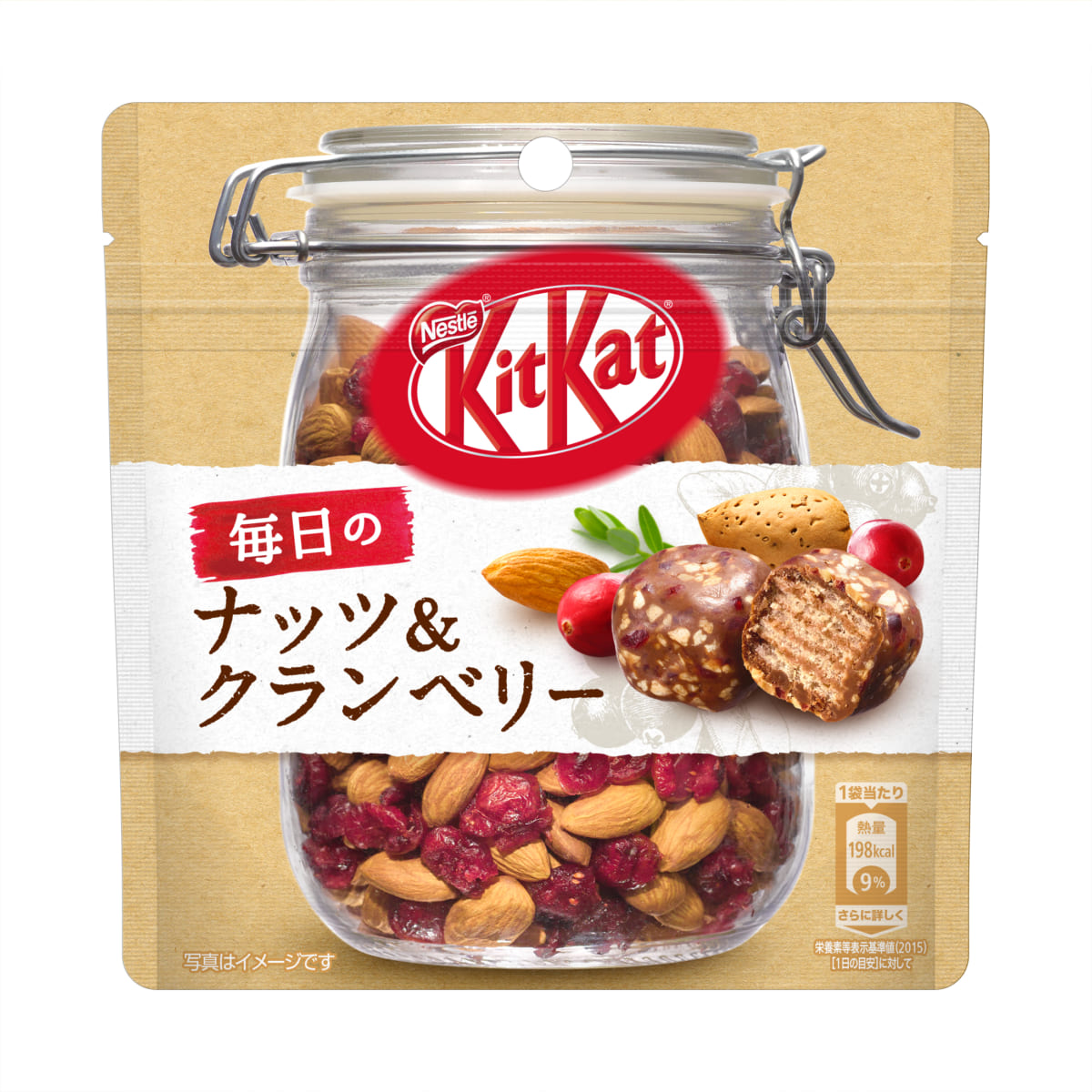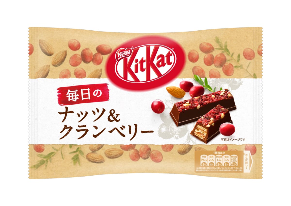 チョコレートをベースに、ナッツとクランベリーを組み合わせたパウチ入りのキットカット。