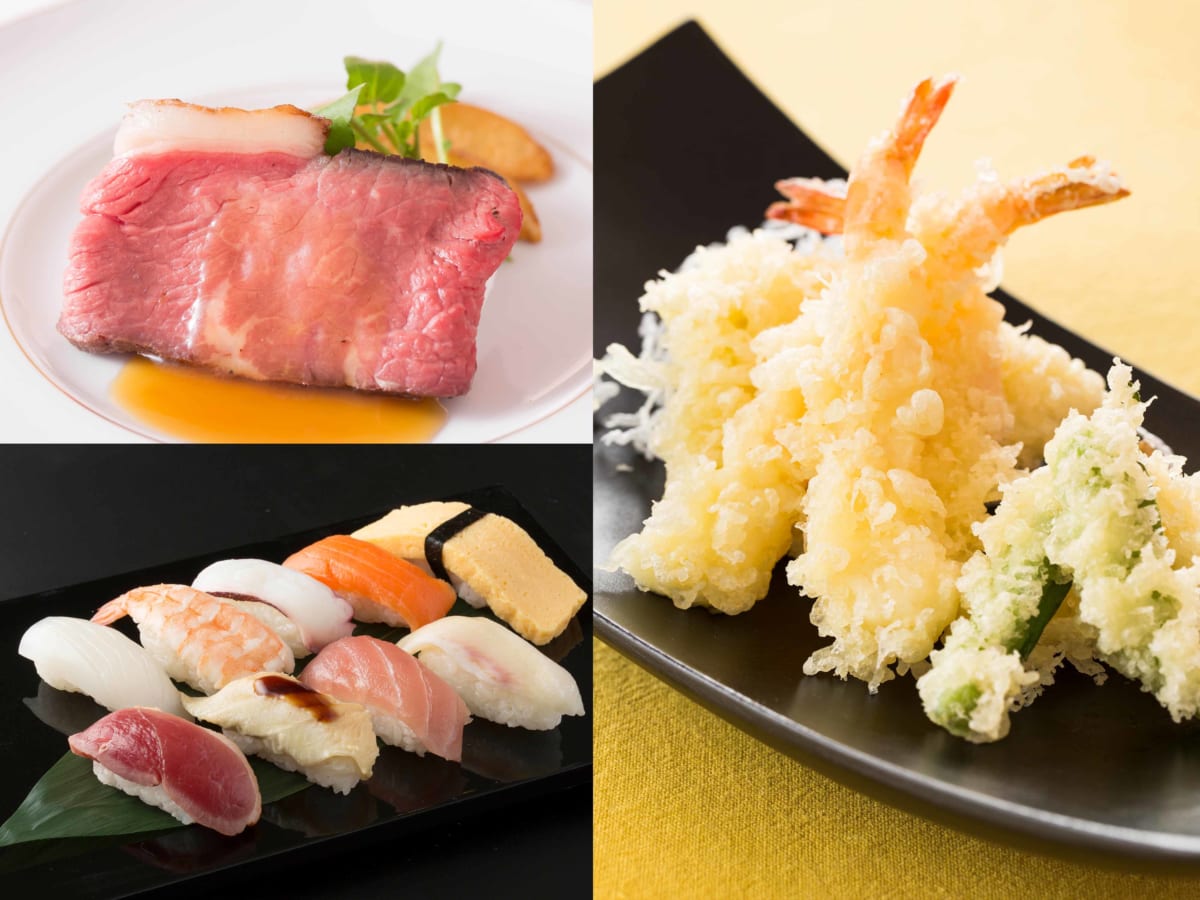 ローストビーフや天ぷら、にぎり寿司などをシェフが目の前でサービス。