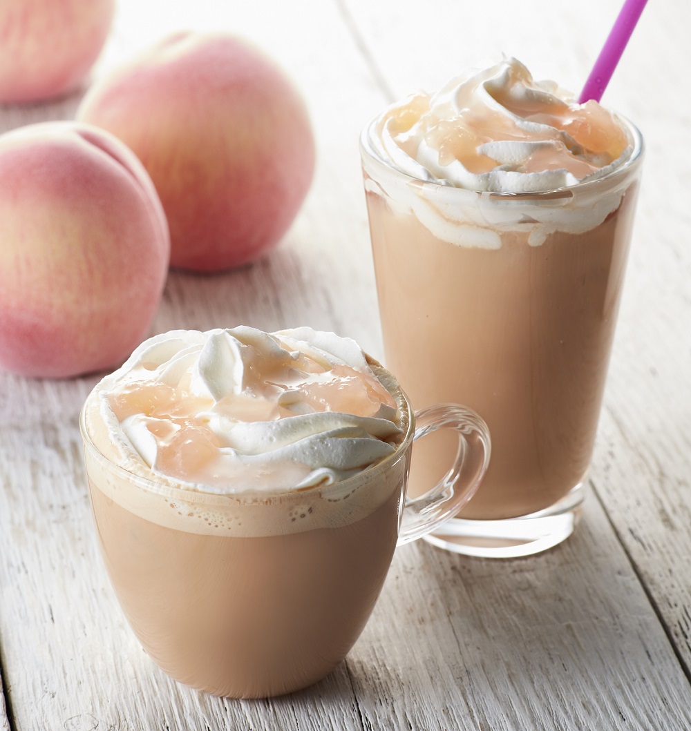 定番のロイヤルミルクティーの美味しさはそのままに、春らしい色合いの桃のコンフィチュールをプラスしたドリンク。