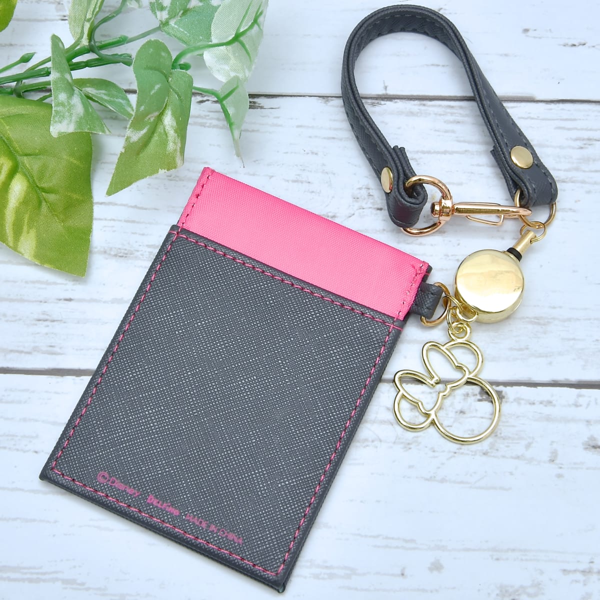 ガーリーなリボンモチーフがあしらわれた「ミニーマウス」デザインのフラットパスケース。