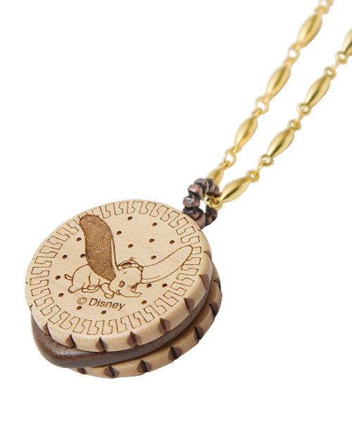 「ダンボ」と「ティモシー」が両面に描かれたビスケットモチーフのネックレス。