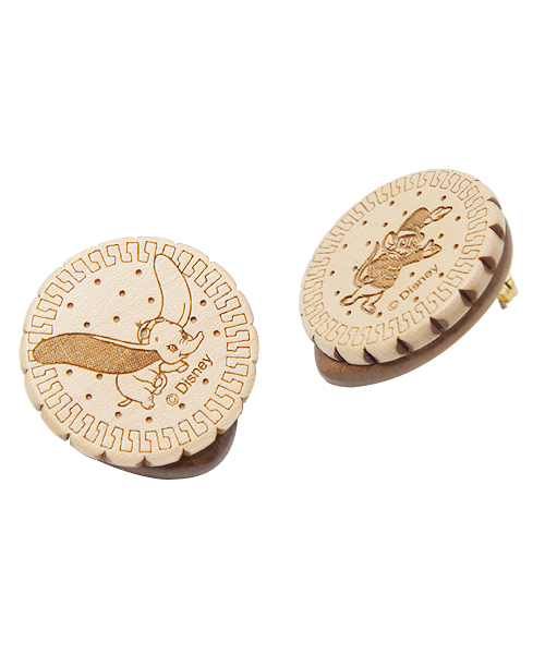 「ダンボ」と「ティモシー」が描かれたビスケットモチーフのピアス。