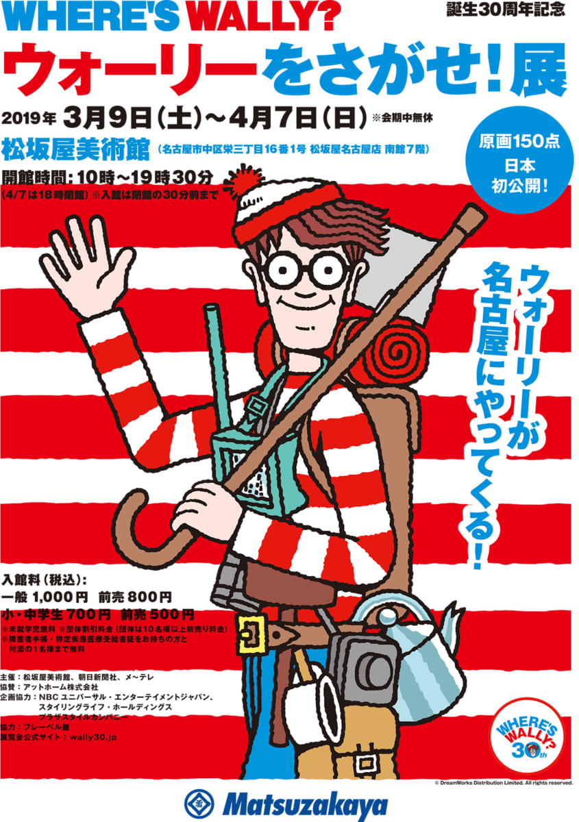 1987年に出版された人気絵本「WHERE’S WALLY?(ウォーリーをさがせ!)」の出版30周年を記念した原画展が2019年3月9日(土)から4月7日(日)の期間にて、名古屋の松坂屋美術館で開催されます。