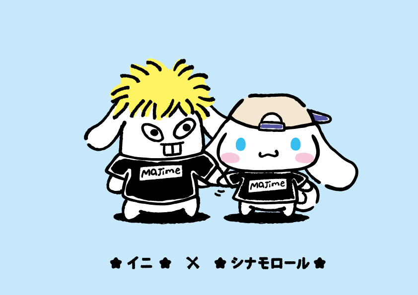 おなじみの☆イニ☆をモチーフにしたキャラクター「まじめん」とシナモロールとのかわいらしいコラボレーションが楽しめます☆