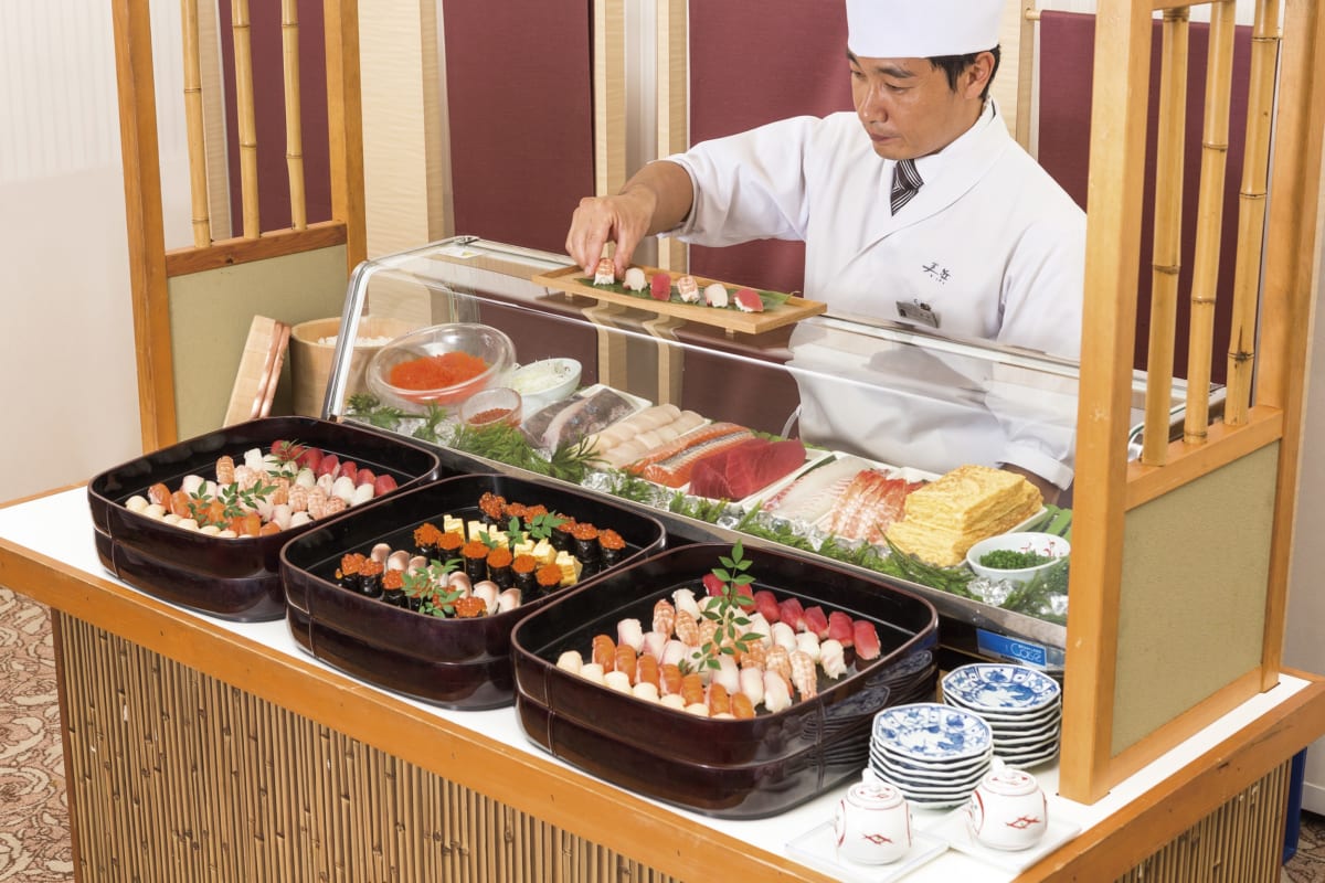 料理長の軽快なトークと、職人たちの豪快な包丁さばきが目の前で見られる大人気企画。
