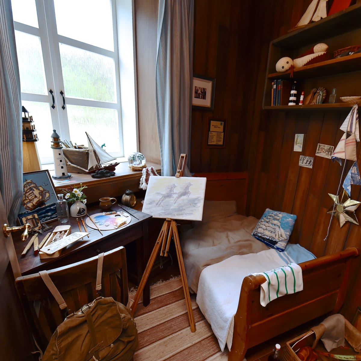 うみうまのスケッチや、スナフキンと撮った写真、灯台のオブジェなどが飾られていて、見ているだけでワクワクとしてくるお部屋です。