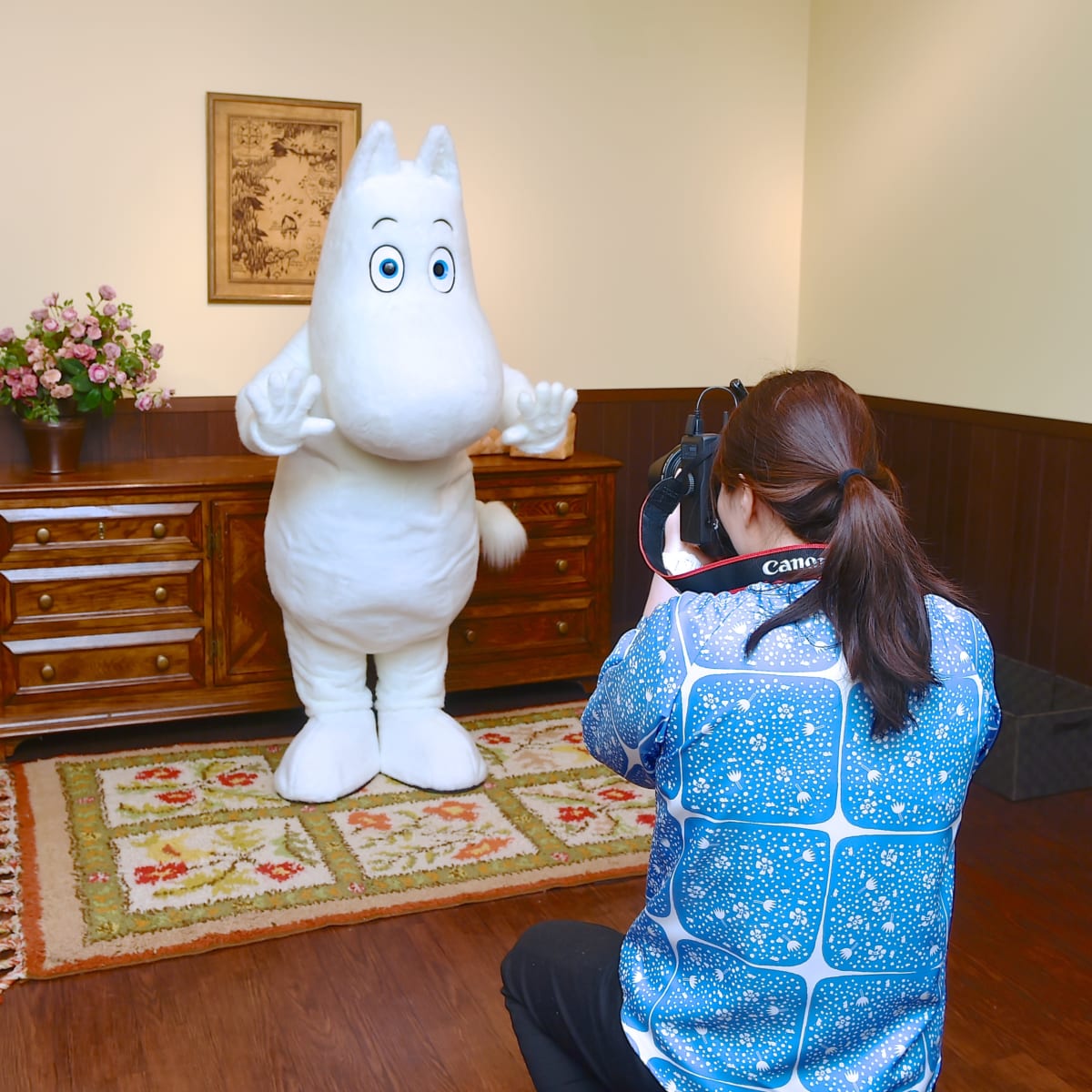 ムーミンやスノークのおじょうさんなど、かわいいキャラクターたちととっておきの写真を記念に残すことができる写真館「ムイックフォト」