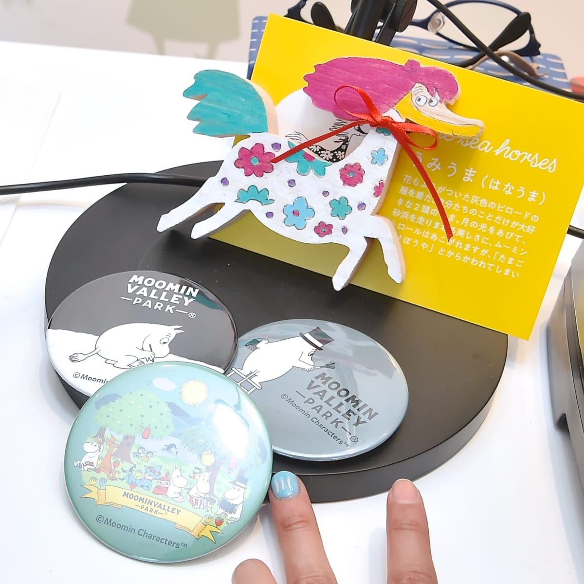 - 「ムーミンバレーパーク」のロゴや、キャラクターたち20種類のデザインから選ぶことができるオリジナルバッジづくり