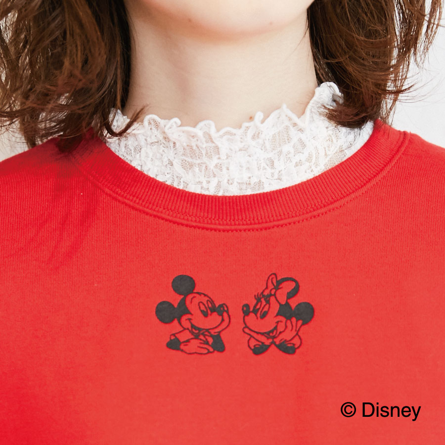 胸元に「ミッキーマウス」&「ミニーマウス」のキュートな顔がプリントされているスウェットです。