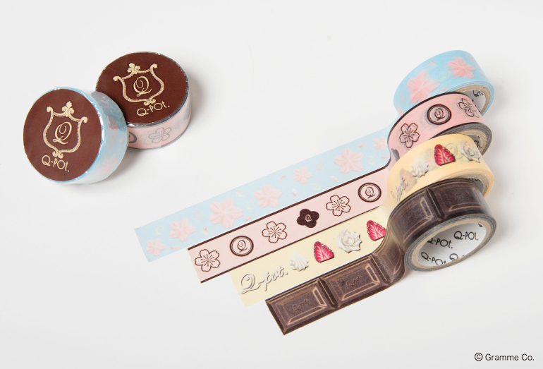 Q-pot.の世界観がぎゅぎゅっと詰まった、夢のようなマスキングテープのデザインは、人気のチョコレート・ホイップと春にぴったりな桜柄の全部で4種類。