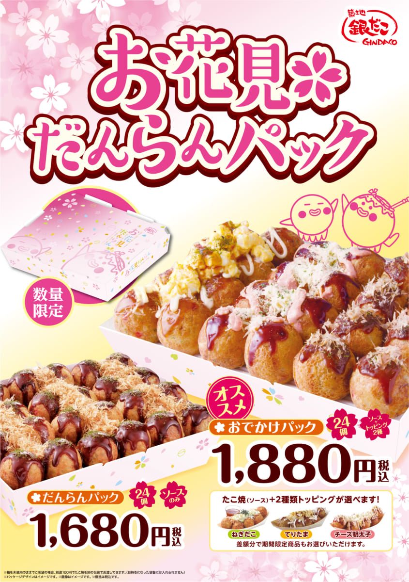 さまざまなトッピングたこ焼が人気の「築地銀だこ」から、お花見や春のお出かけのときに楽しめる「お花見だんらんパック」が登場!
